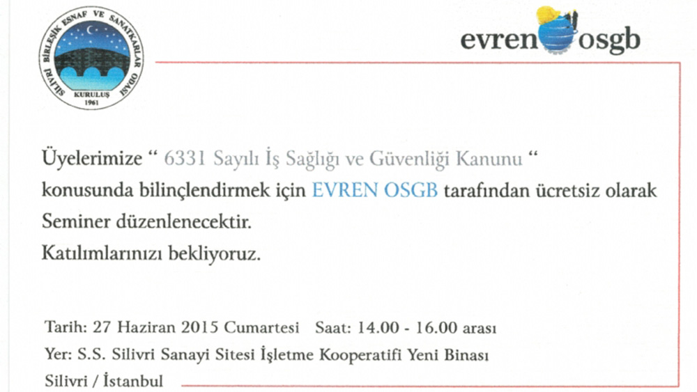 6331 Sayılı İş Sağlığı Ve Güvenliği Hizmeti Odamızda Başlamıştır.